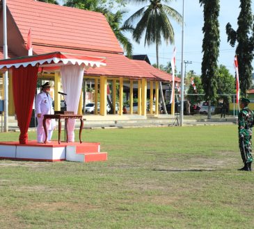 AMUNTAI - Puncak Peringatan HUT Proklamasi Kemerdekaan Indonesia ke-77 tingkat Kabupaten Hulu Sungai Utara (HSU) ditandai upacara pengibaran bendera Merah...