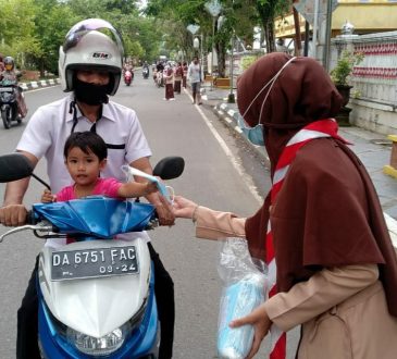 AMUNTAI - Kwartir Cabang (Kwarcab) Gerakan Pramuka Kabupaten Hulu Sungai Utara (HSU) bagikan masker gratis kepada masyarakat guna mencegah penularan Covid-19...